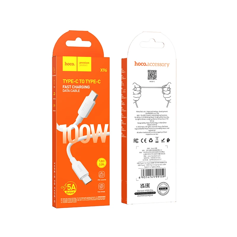کابل شارژ USB به Type-C به طول 1 متر 100W-6A از برند هوکو مدل Hoco X96 (100% اورجینال)
