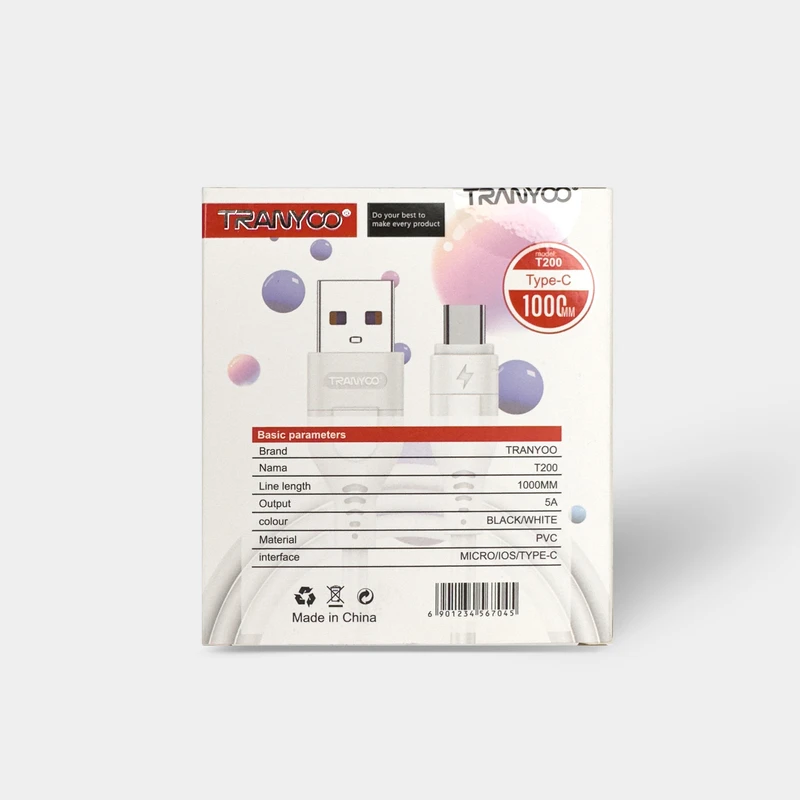 کابل میکرو USB TO MICRO -TRANYOO -مدل T200 ( گارانتی 3 ماهه صحت سیستم )